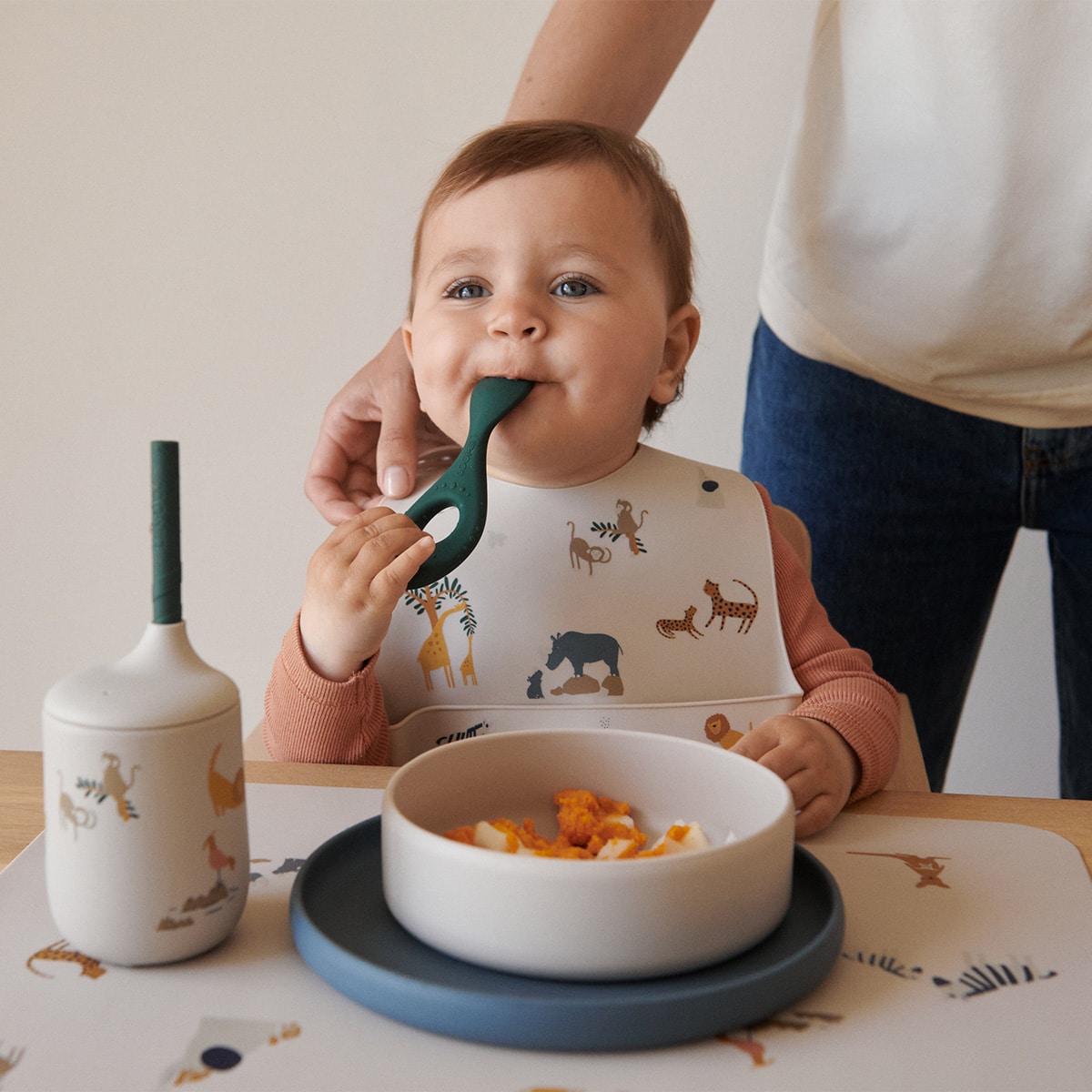De nombreuses marques proposent des coffrets repas en silicone mais Liewood est la seule à offrir un modèle aussi complet. En effet, en plus d’une assiette, d’un bol et d’une cuillère qui constituent la base d’un coffret repas, le set repas 6 pièces de la marque danoise propose un bavoir, un verre avec une paille amovible, et un set de table.